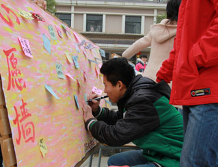 12月15日,南昌大學護理學院在醫(yī)學院新世紀廣場舉行了2013大學生社會實踐評選成果校園巡展。此次巡展共展出17塊展板,其中包括6塊獲獎優(yōu)秀團隊介紹板、6塊“愛佑童心”志愿者隊“愛佑之行”展板、3塊“愛·一起來”宣傳海報板、一塊留言板和一塊心愿墻展板。展板形象展現(xiàn)了“愛佑童心”三下鄉(xiāng)團隊實踐全過程,從前期的緊張準備、中期實踐到后期的精心總結(jié),將“愛佑童心”六支實踐隊伍的活動詳細地展現(xiàn)給大家。最后,參觀者也在心愿墻為先心患兒寫下最真摯的祝福,“愛佑童心,加油”“祝愿先心患兒早日康復”“藍天白云之下,我們與愛佑同行”等等祝福心愿擠滿心愿墻。
