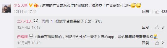 網(wǎng)友“@少女大新”:這樣的廣告是怎么過的審批的,難道交了廣告費(fèi)就可以嗎?