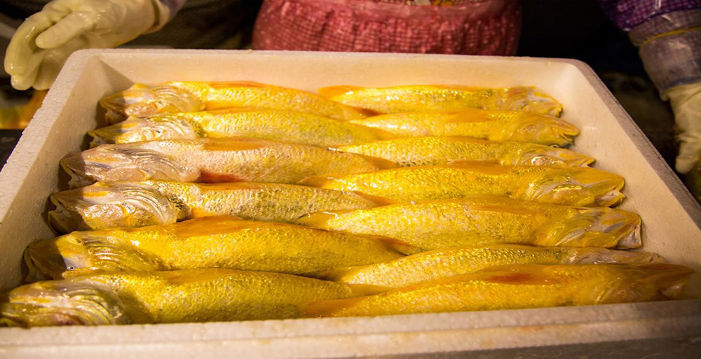 “大黃魚是我國特有的重要海洋經(jīng)濟魚類,體色金黃、唇部橘紅、肉質細嫩、營養(yǎng)豐富,深受市場歡迎!彼螣樈榻B。