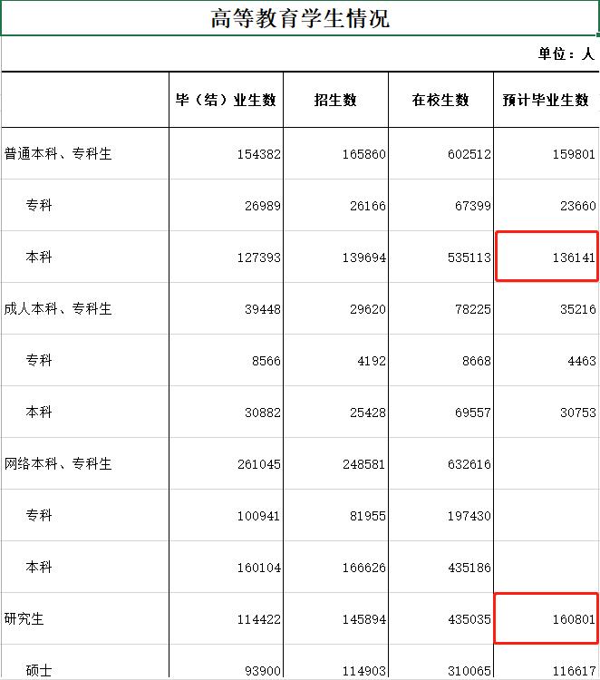 北京市教育委員會網(wǎng)站3月20日印發(fā)的《2022-2023學(xué)年度北京教育事業(yè)發(fā)展統(tǒng)計概況》數(shù)據(jù)顯示,2023年北京碩博畢業(yè)生預(yù)計為16.08萬人,普通本科畢業(yè)生預(yù)計為13.61萬人,是否會出現(xiàn)“學(xué)歷倒掛”的現(xiàn)象?對此,北京外國語大學(xué)就業(yè)創(chuàng)業(yè)中心主任蘭建華表示,北京的情況不具有普遍性,從高等教育招收情況來看,2022年全國共招收研究生124.25萬人,普通本科招生467.94萬人,本科招生遠大于碩博招生規(guī)模。碩博研究生仍是塔尖人才的形勢并未改變。